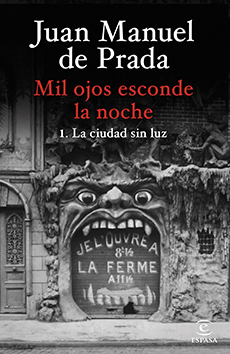 Los que seguimos a Juan Manuel de Prada (Baracaldo, 1970) desde que publicara su primera novela, aquella insospechada maravilla (escrita por un veinteañero) titulada Las máscaras del héroe (1996), soñábamos con que algún día volviera a esos mundos de la bohemia gañán, tan cafres y novelescos, a los que supo darles verdadera vida literaria. Así, el anuncio de la publicación de Mil ojos esconde la noche (2024-2025), secuela espiritual de aquella (aunque solo fuera porque recupera a su protagonista, Fernando Navales, reconocido «falangista de sangre»), nos hizo a muchos dar un bote de alegría. La alegría sin embargo llegó en paradinha, esto es, en dos tomos separados (quizás demasiado) en el tiempo, una jugada literario-comercial a mi juicio fallida, como ya comentaremos. Por el camino, un camino largo de casi treinta años, el propio Prada se había dedicado a desmitificar su fastuoso debut. «No es tan buena, es una novela de principiante», nos llegó a decir una vez en persona. Al autor le pesaba que el personaje de Navales no evolucionara en Las máscaras del héroe, quedando retratado de una piedra, casi caricaturesco. Esta pega que Prada se ponía es importante recordarla ahora, pues no es posible entender Mil ojos esconde la noche sin tenerla en la mollera.